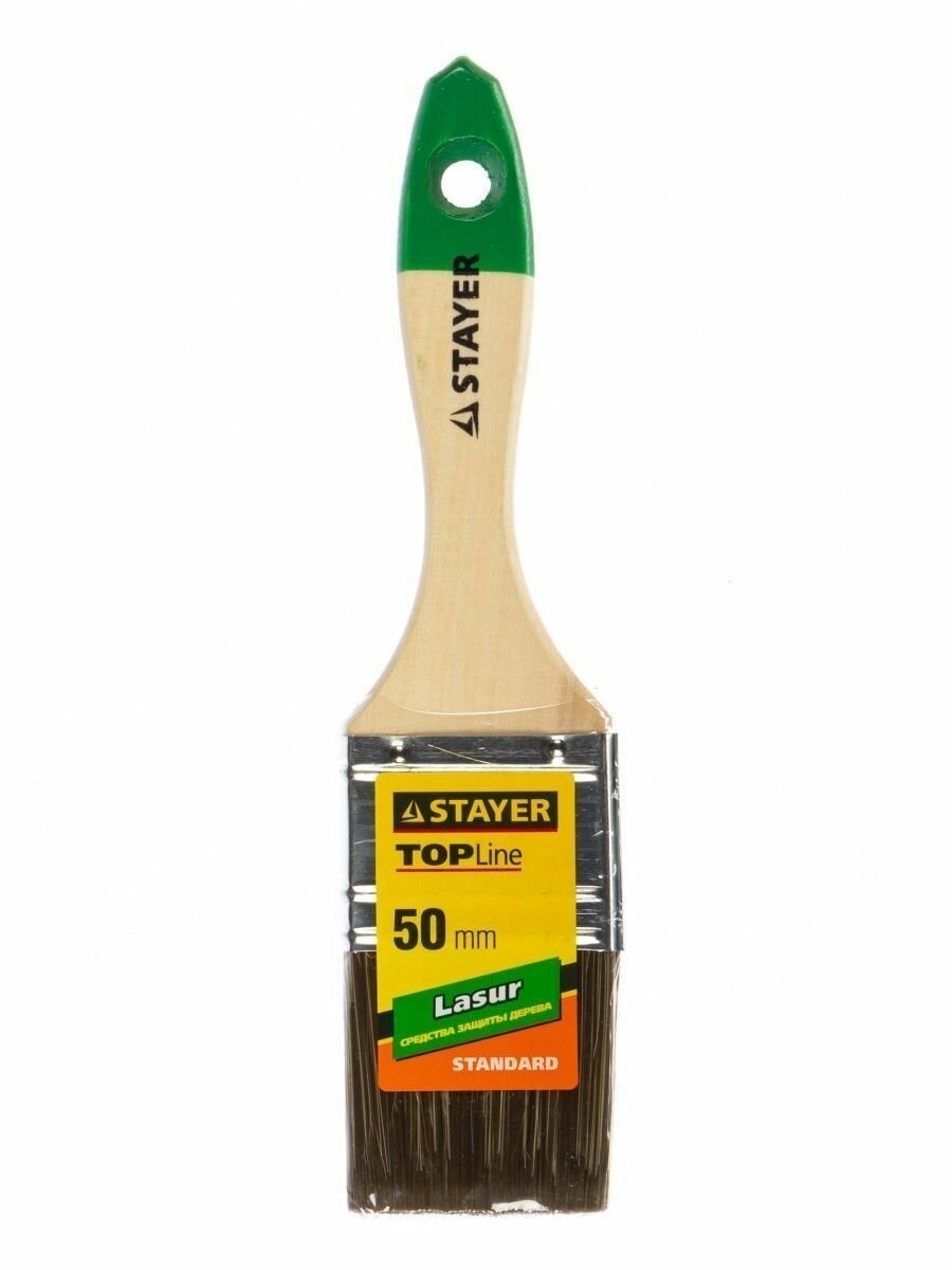 Купить STAYER LASUR 50 мм, 2″ смешанная щетина, деревянная ручка, Плоская кисть, STANDARD (01031-50)