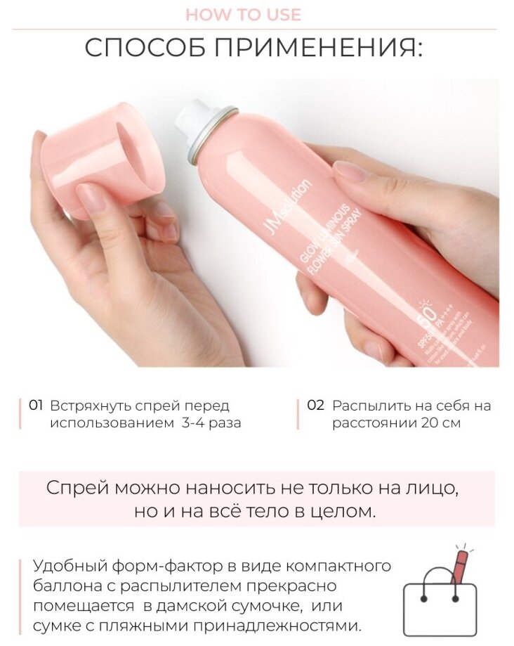 JM Solution Солнцезащитный спрей Glow Luminous Flower Sun Spray Rose SPF50+ SPF 50, 180 мл