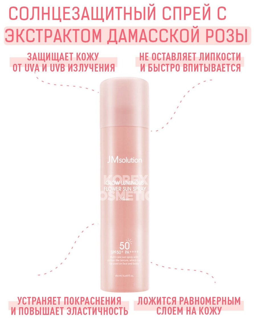 JMSolution Солнцезащитный спрей с дамасской розой Glow Luminous Flower Sun Spray SPF50+РА+++, 180 мл.