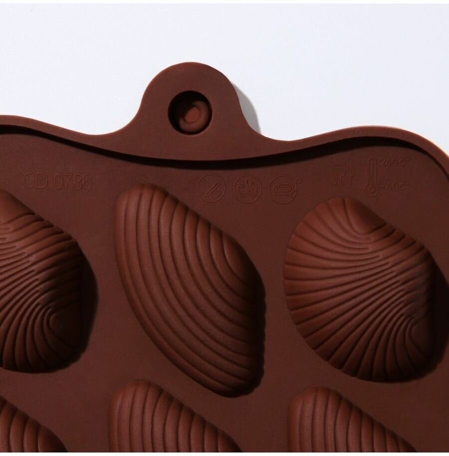 Форма для шоколада Доляна «Ракушки», силикон, 20,5×10,5 см, 15 ячеек (2,7×2,4 см), цвет коричневый