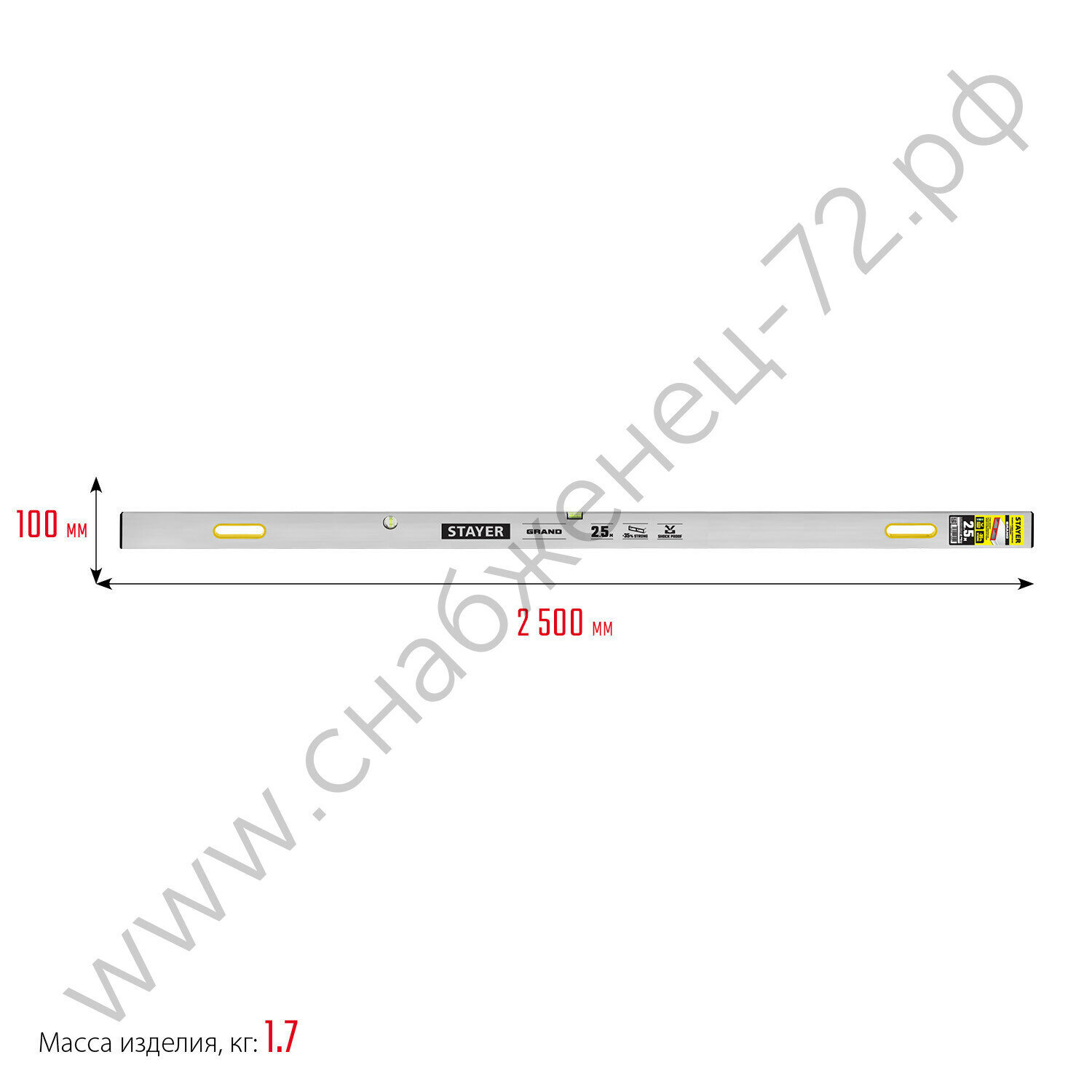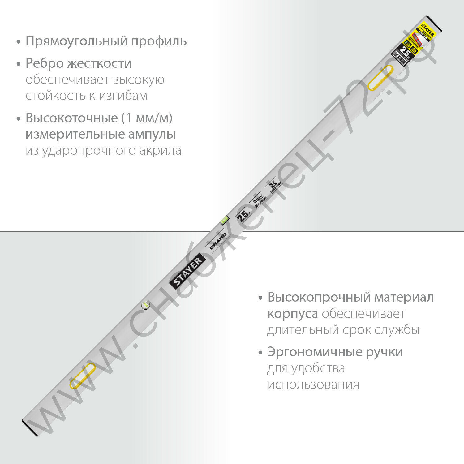 Правило-уровень с ручками GRAND, 2.5 м, STAYER(10752-2.5)