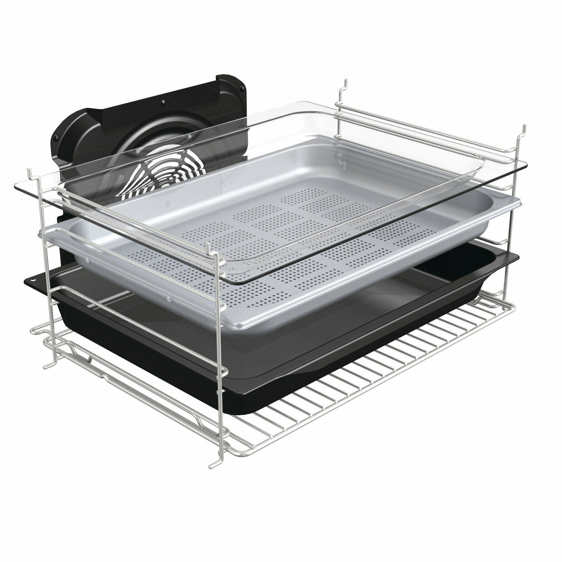 | Минусы: | Объем меньше, чем у обычного духового шкафа. Небольшой контейнер для воды. Отсутствие пиролитической очистки. Низкая максимальная температура приготовления. Не удобное управление. Отсутствие телескопических направляющих. |