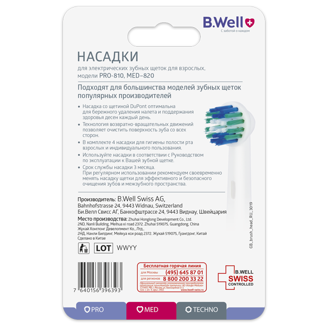 СохранитьСменные насадки для электрических зубных щеток B.Well PRO-810, MED-820 (4 шт. в комплекте, подходят для большинства моделей популярных производителей) интересное: