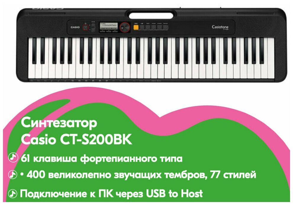 Ниже Вы можете прочитать отзывы на Синтезатор Casio Ct-s200bk 61клав. черный Ct-s200bk, ознакомится с подробными характеристиками, посмотреть интересные обзоры и фотографии на Синтезатор Casio Ct-s200bk 61клав. черный Ct-s200bk.