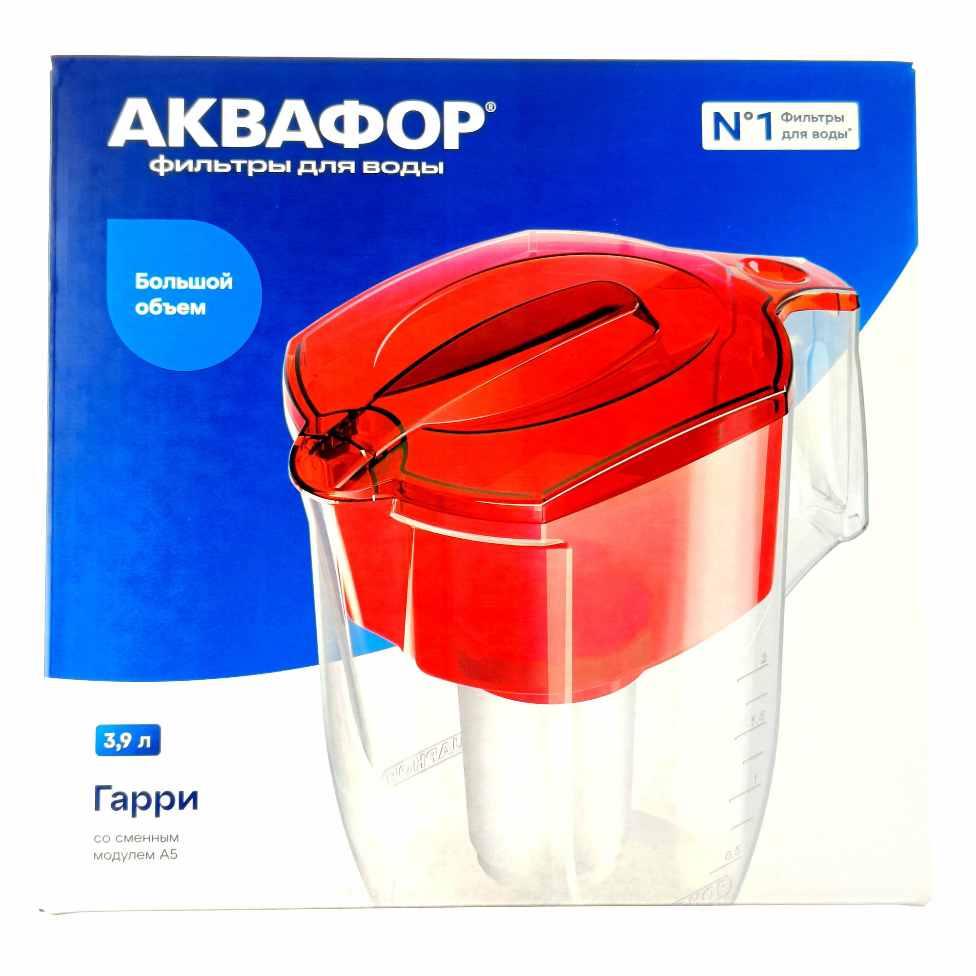 Кувшин-фильтр для очистки воды АКВАФОР Гарри А5, 3.9 л, со сменной кассетой, красный, 501734
