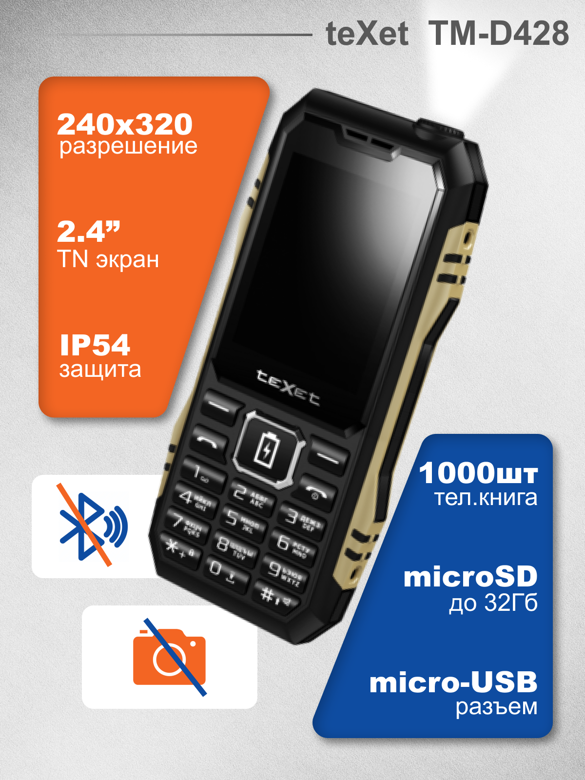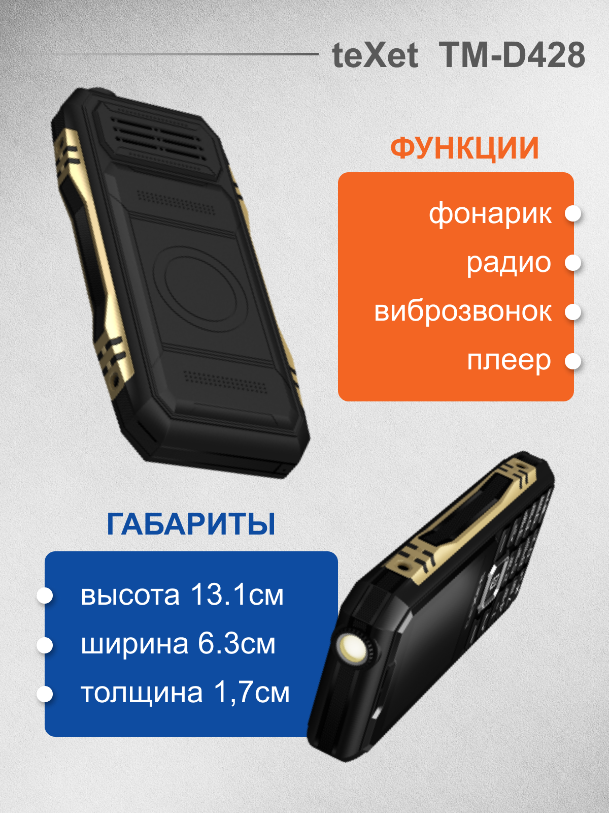Мобильный телефон Texet TM-428D черный интересное: