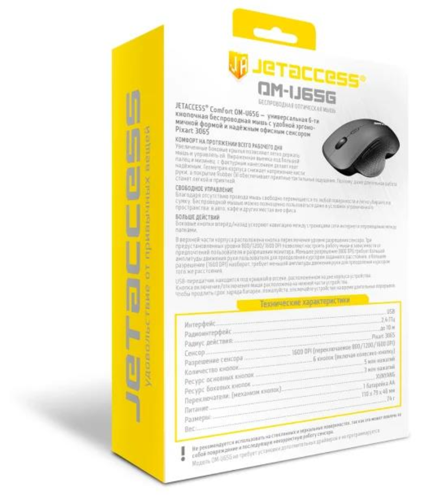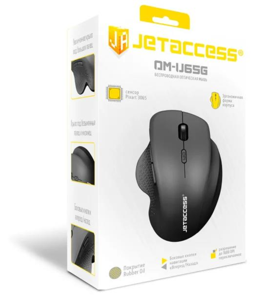 Беспроводная мышь Jet.a Comfort Om-u65g чёрная (800/1200/1600dpi, Pixart 3065, 6 кнопок, Usb)