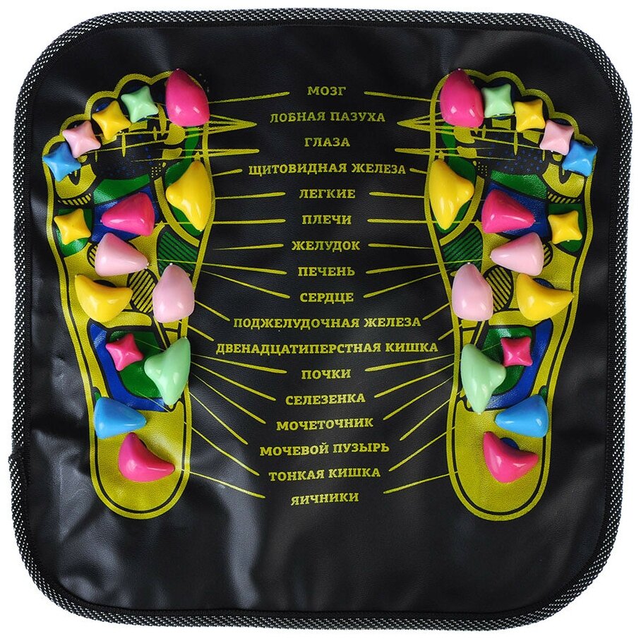 Коврик массажный для ног с указанием акупунктурных точек, 35х35см, пластик, искусств.кожа 191-034