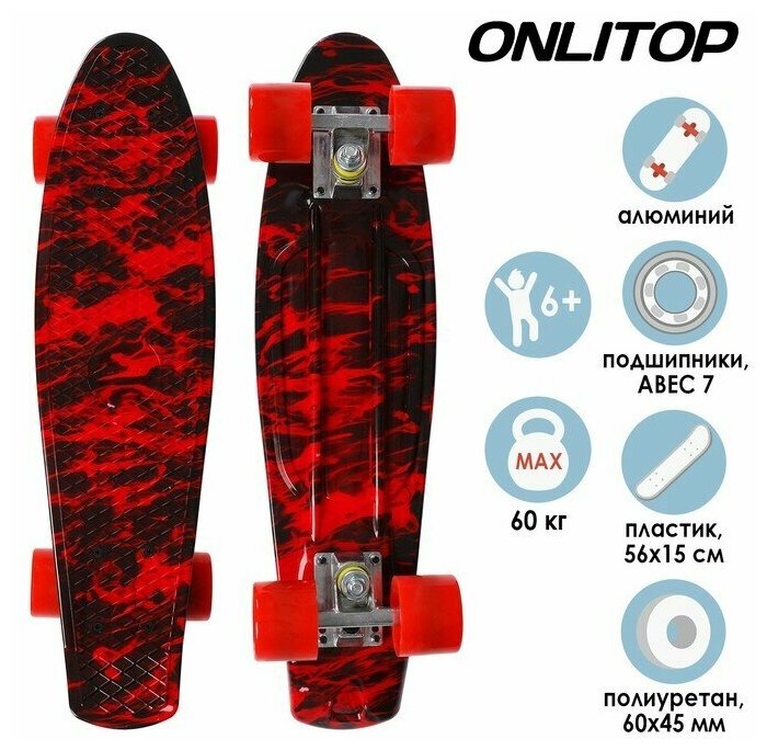 Пенниборд ONLITOP R2206, 56х15 см, колёса PU, АBEC 7, алюминиевая рама, цвет красный