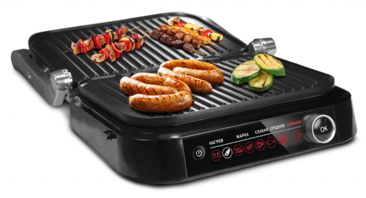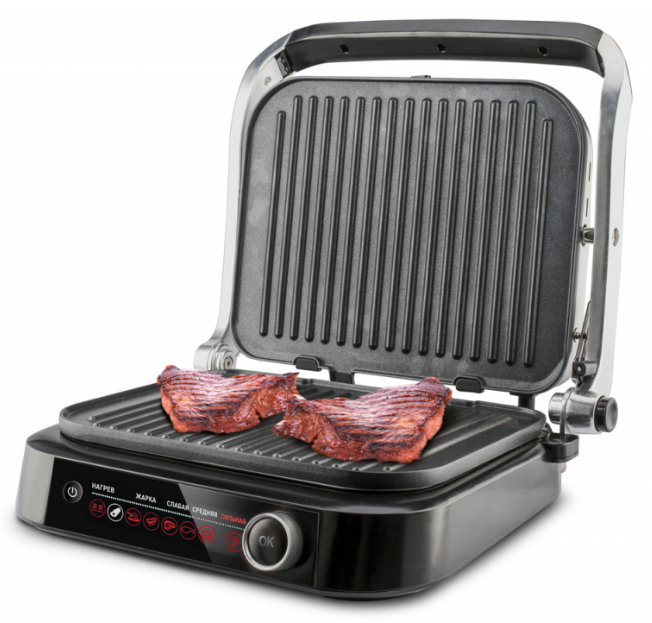 Съемные панели Функциональный - включил программу и по сигналу достал готовый продукт Есть и ручное управление Внешний вид - отлично впишется на любую кухню, красивый дизайн Удобство - не тяжелый, при этом достаточно массы для приготовления Пробовали готовить овощи ( картошку, помидоры, кабачок, морковь, свеклу) рыбу, колбаски, стейки, бургеры - все на 5+ |