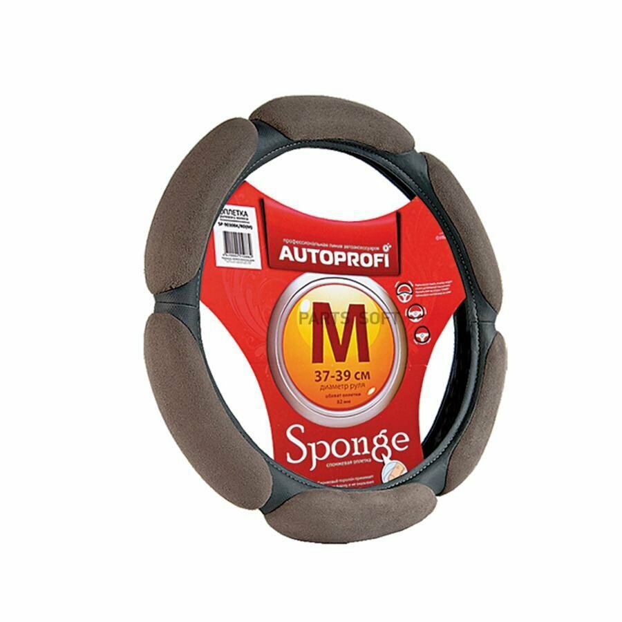Оплетка на руль autoprofi sponge sp-5026 d.gy (m) темно-серая