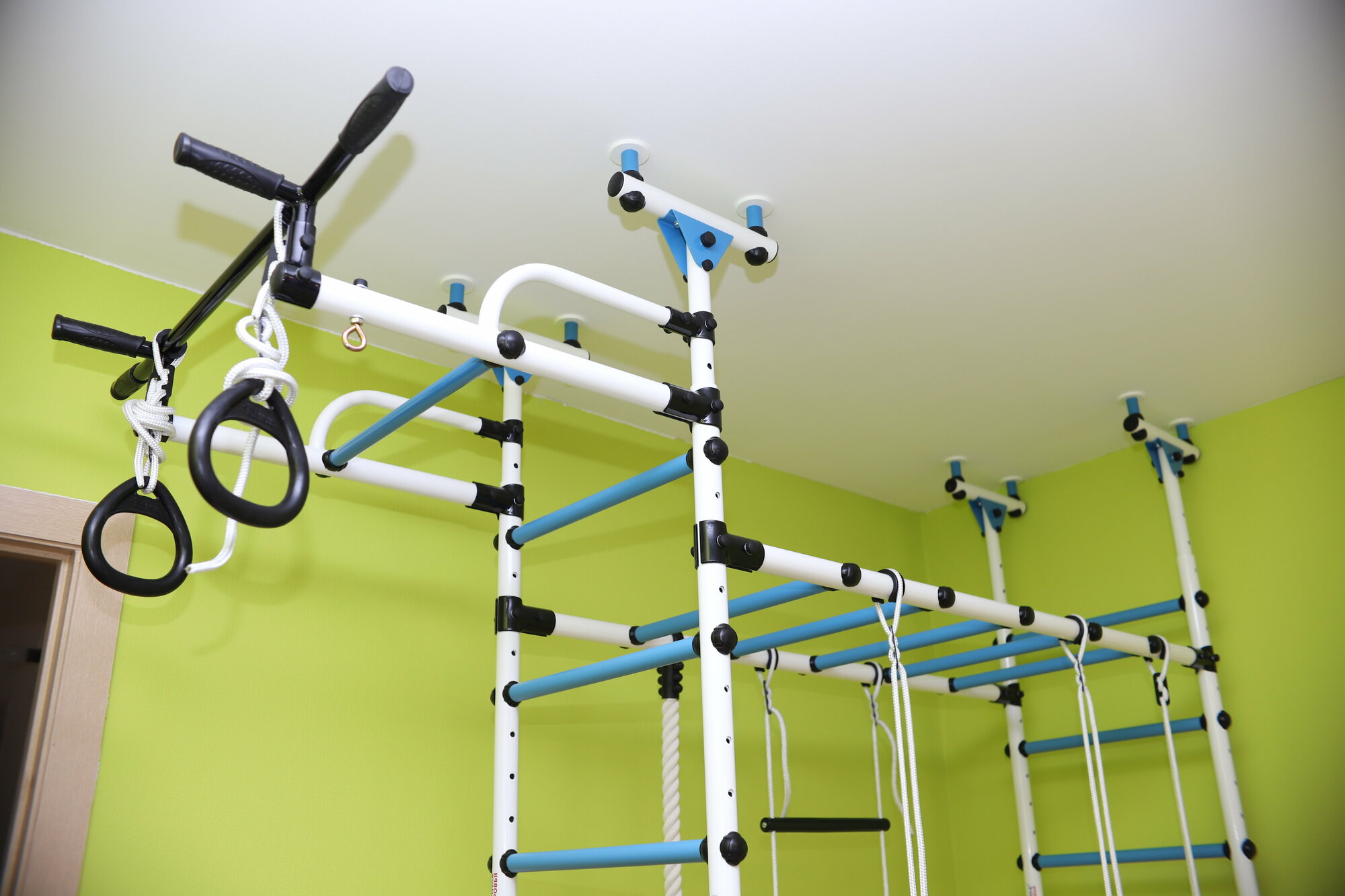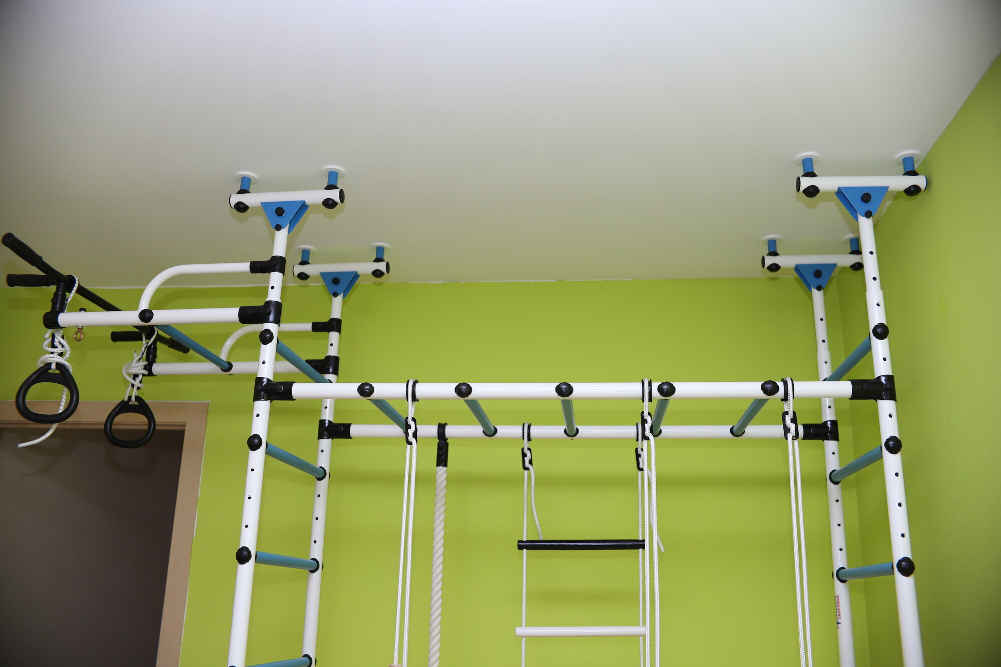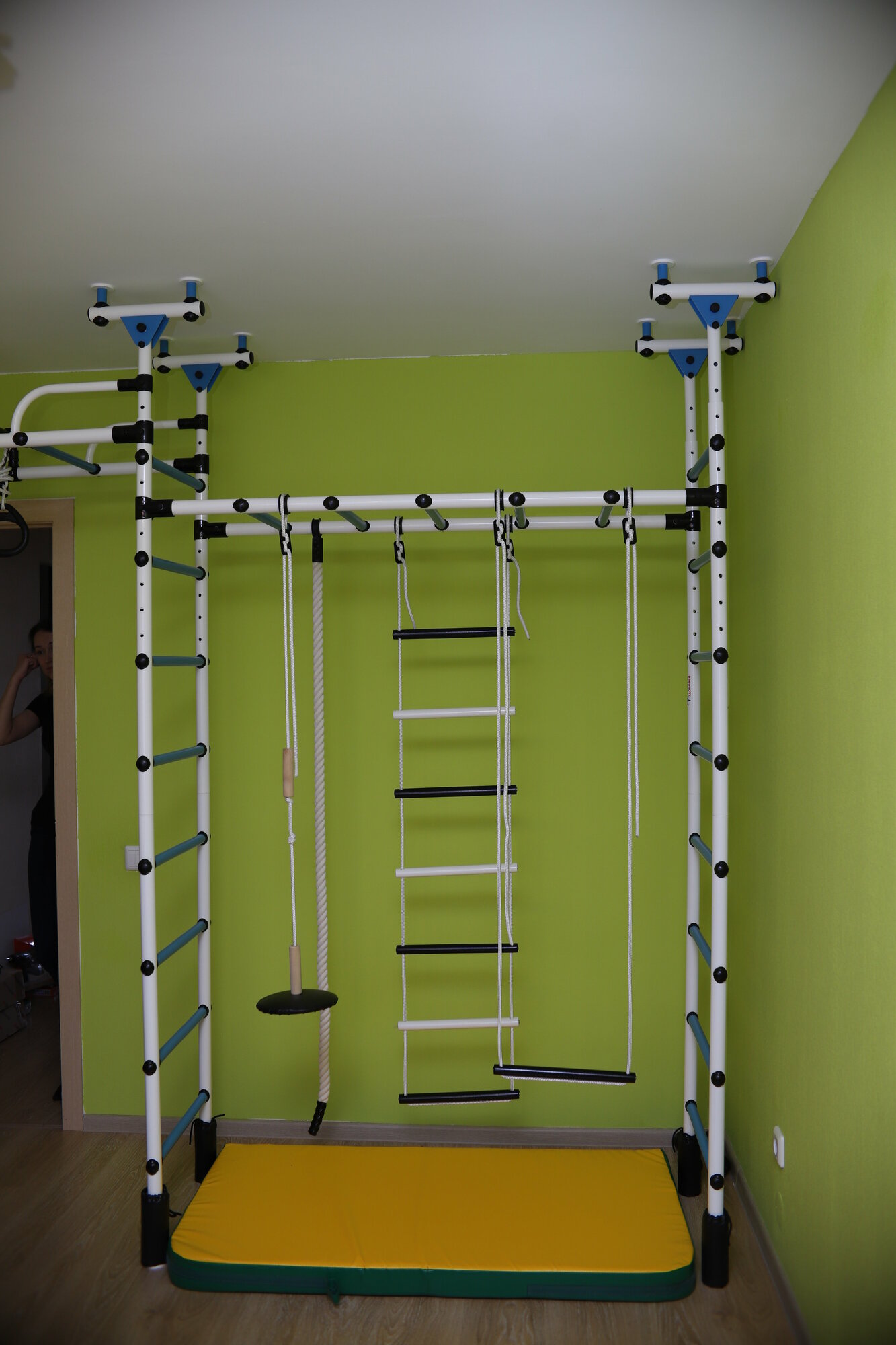 Спортивно-игровой комплекс распорный Слоненок (Голубой радуга) - детская шведская стенка для дома Формула здоровья