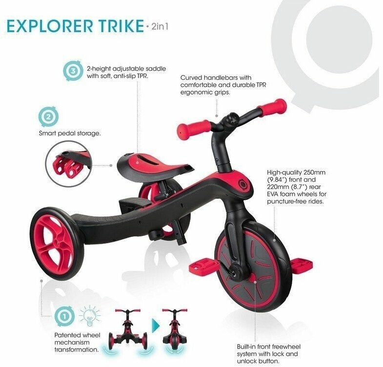 Велосипед-беговел "Globber" Trike Explorer (2 IN 1) (OneSize, Красный)