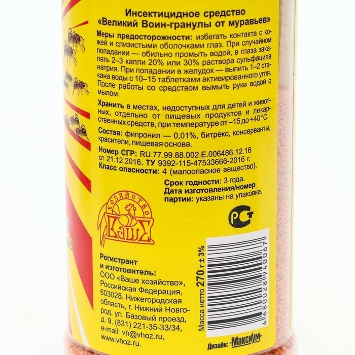 Великий воин Ваше Хозяйство Гранулы от муравьев 270 г 4680028940067 .