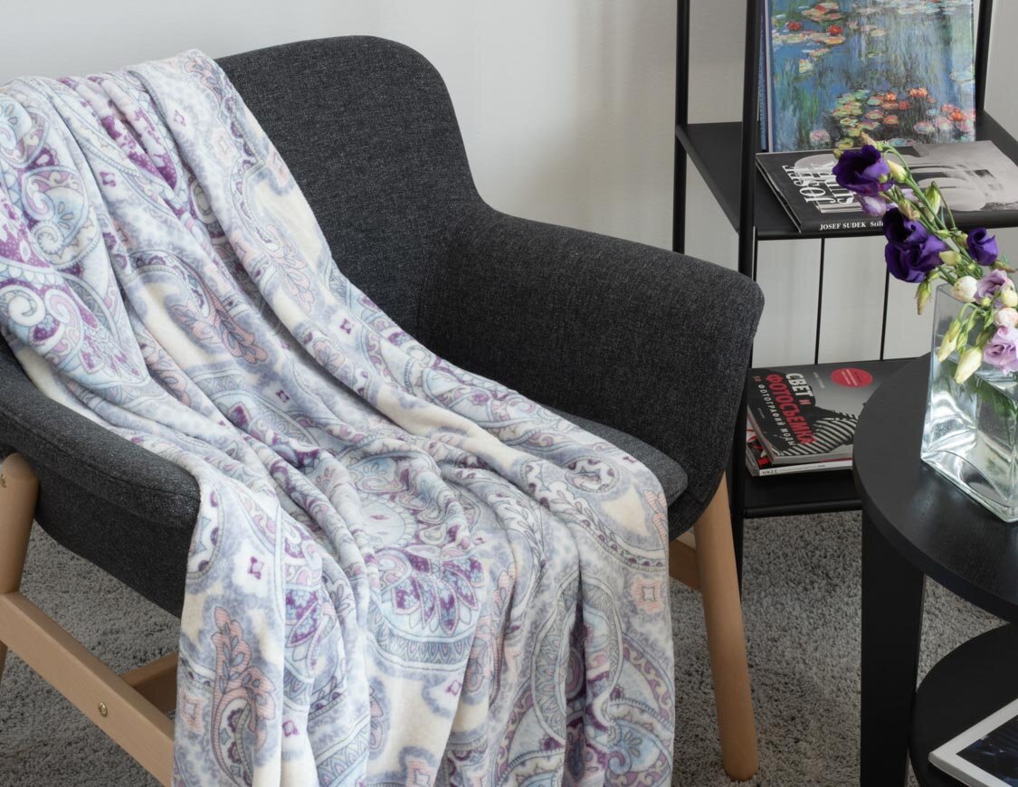 Плед Guten Morgen Камилла, 200 х 220 см, голубой/белый/фиолетовый