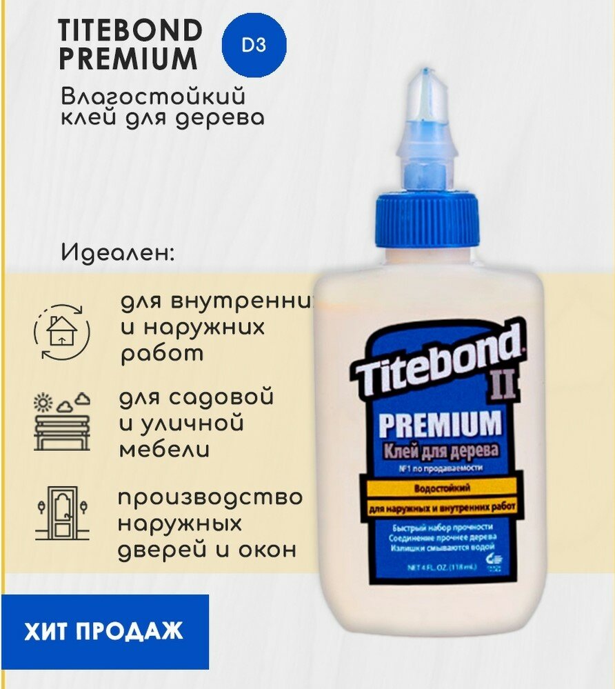 Клей для дерева TITEBOND II PREMIUM WOOD GLUE влагостойкий ПВА 118 мл, 3шт
