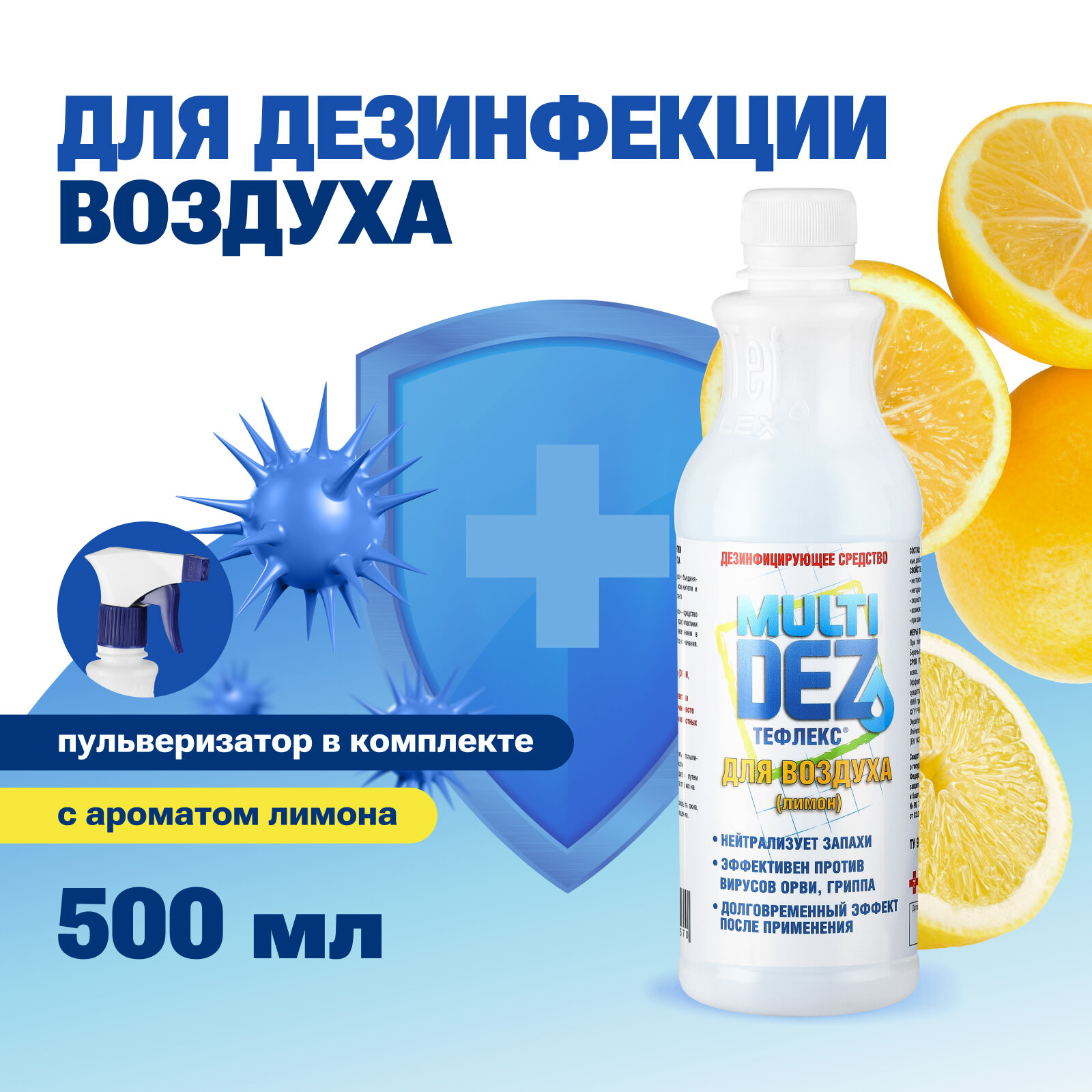 Тефлекс, Средство для дезинфекции воздуха MultiDez «Лимон», с триггером, 500 мл