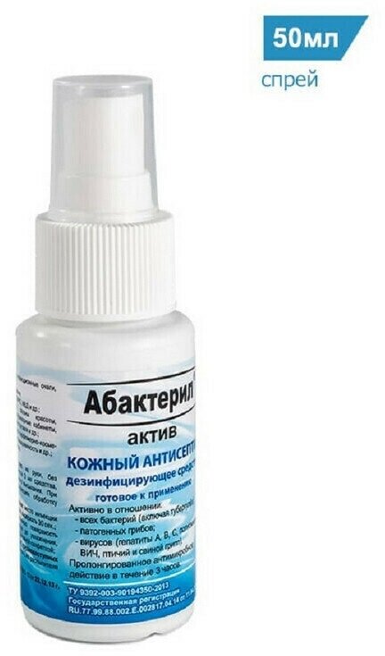 Антисептик кожный "Абактерил-Актив" спрей, противовирусный, 50 мл