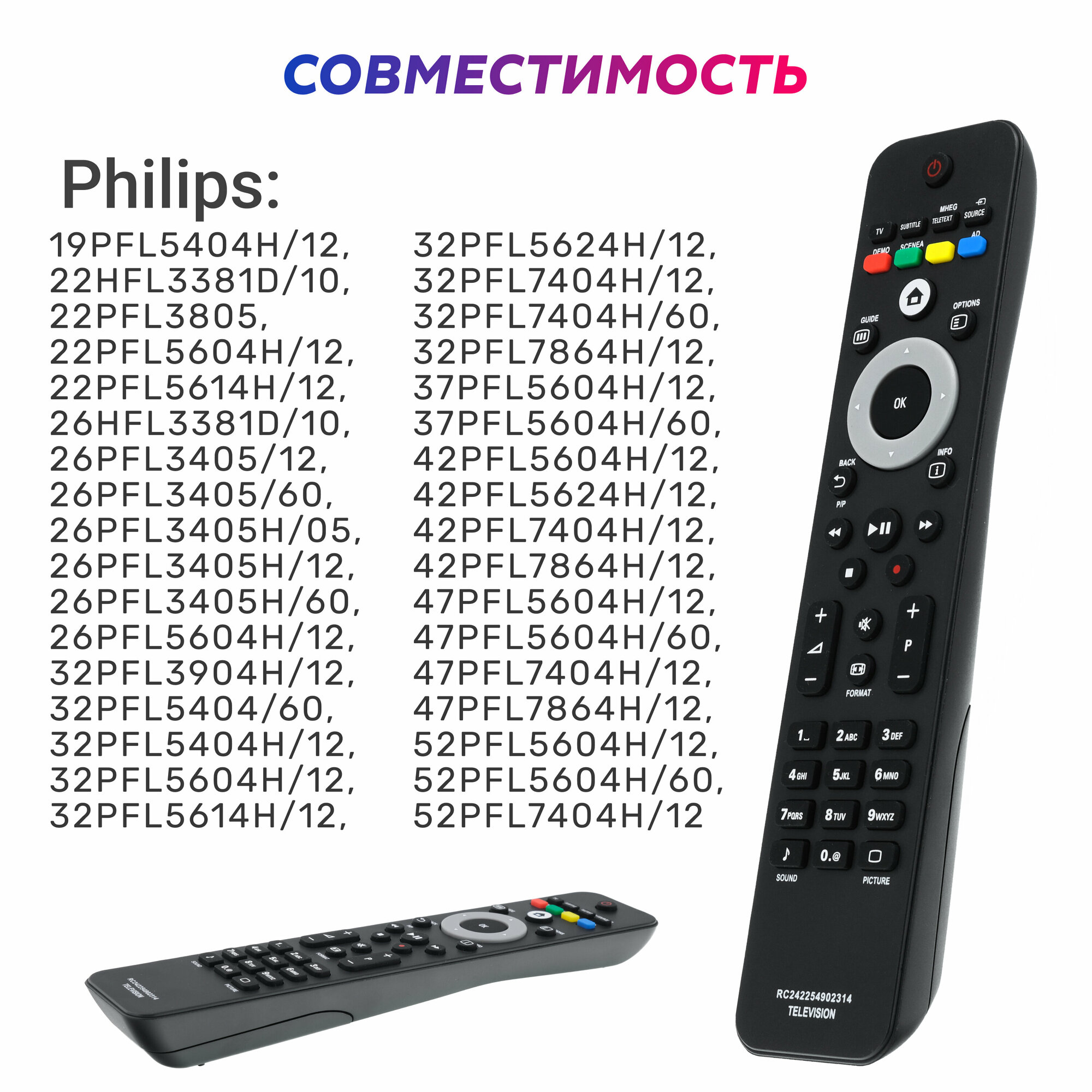 Пульт ДУ Huayu RC-242254902314 / 2422 549 02314 для телевизоров Philips 19PFL5404H-12/22PFL3805/32PFL5614H-12/32PFL7864H-12/47PFL7864H-12/52PFL5604H-12, черный