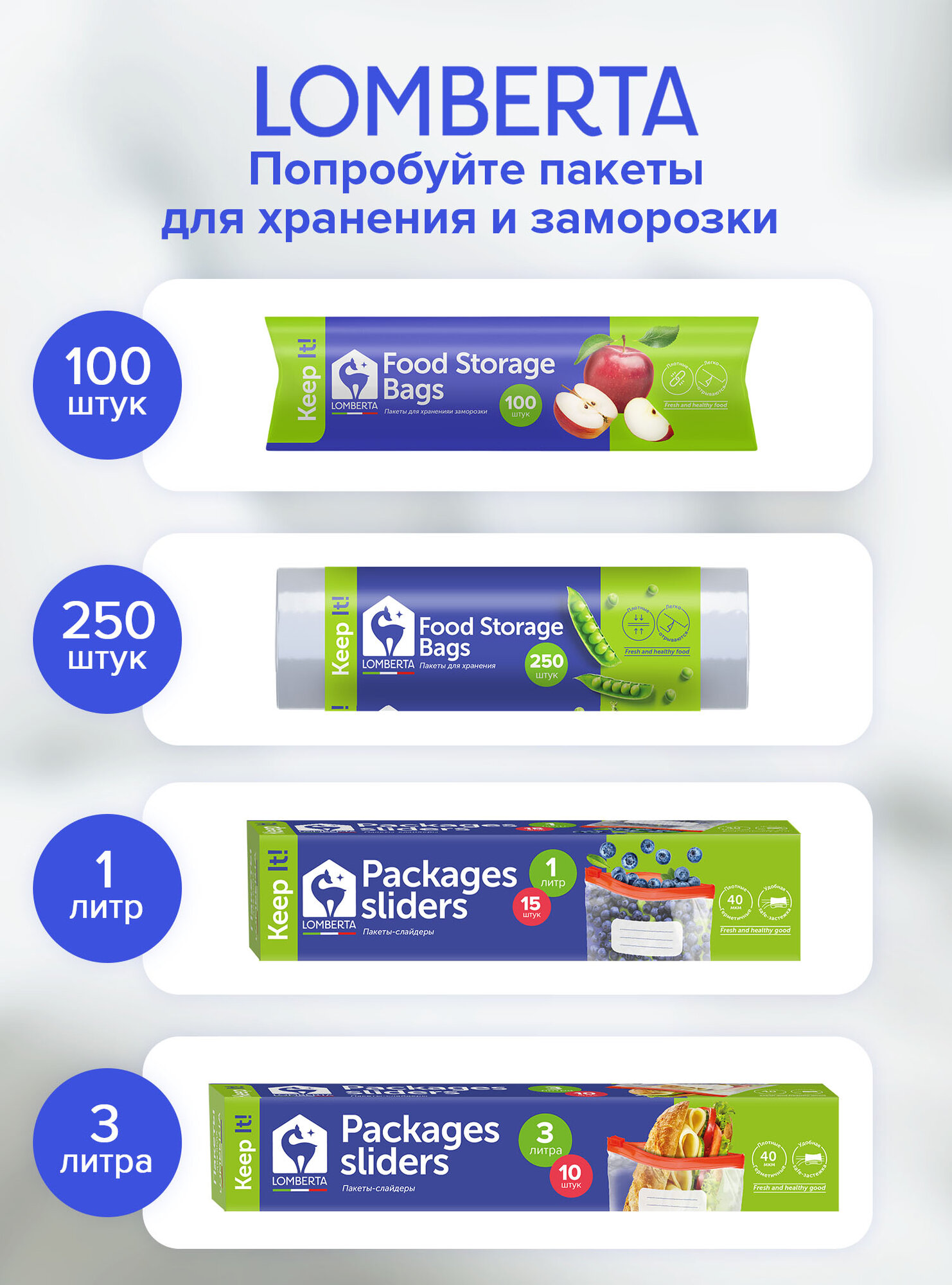 Пакеты для заморозки Lomberta, 250 шт. пакеты пищевые для хранения продуктов