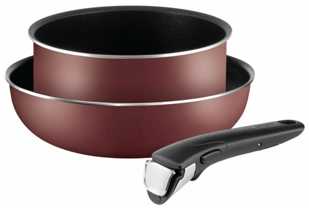 Набор посуды TEFAL Ingenio 3 предмета: сотейник 26см, сковорода-вок 26см, съемная ручка. интересное: