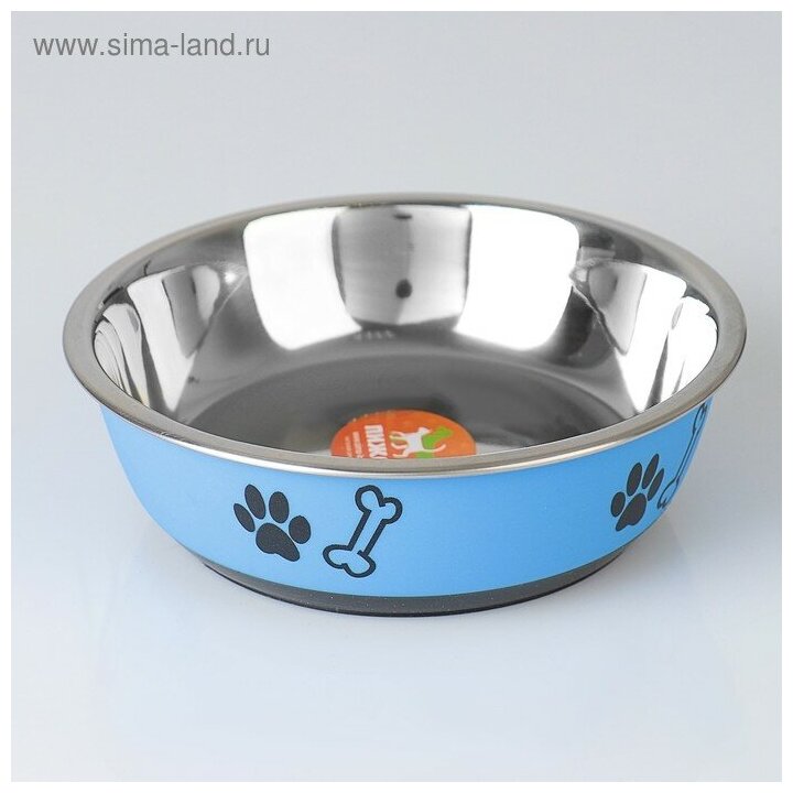 Купить Миска округлая с нескользящим основанием и принтом, голубая, 450 мл