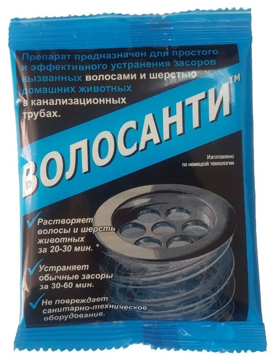 Средство для чистки сантехнических труб от волос и засоров "Волосанти" 35гр