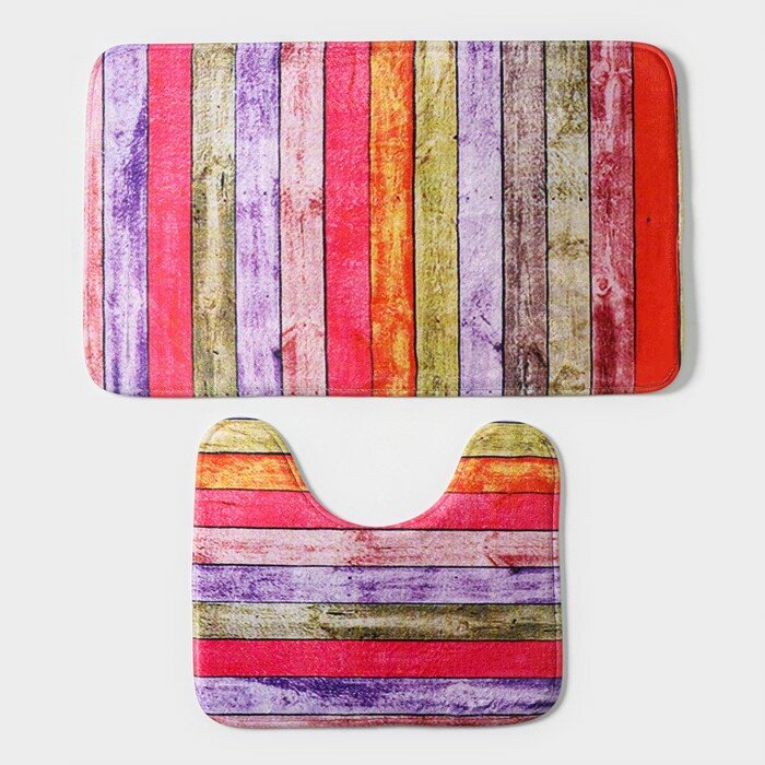 Набор ковриков для ванной и туалета «Цветные деревяшки», 2 шт: 40×45, 45×75 см