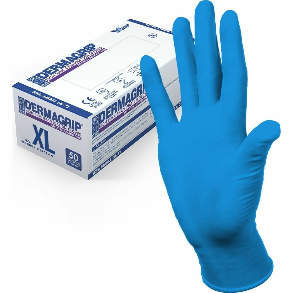 Перчатки смотровые WRP Dermagrip High Risk, 25 пар, размер: XL, цвет: синий