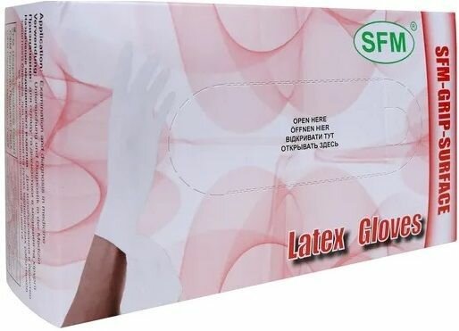 Перчатки одноразовые латексные смотровые SFM, нестерильные, неопудренные текстурированные, размер L, 50 пар