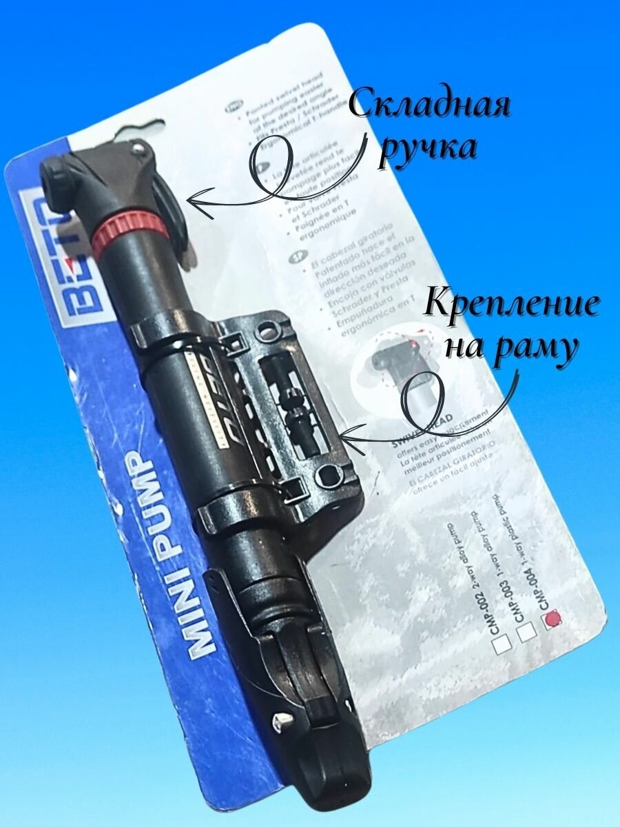 | Плюсы: | Насос, а это главное, полностью функционален! Качает прекрасно. Головка зажимает вентиль плотно. Насос практически невесомый, в креплении не болтается, при езде не выпадает (фото1). Из-за своих миниатюрных размеров не выступает на раме, соответственно ни за что не цепляется и не мешает (фото2).