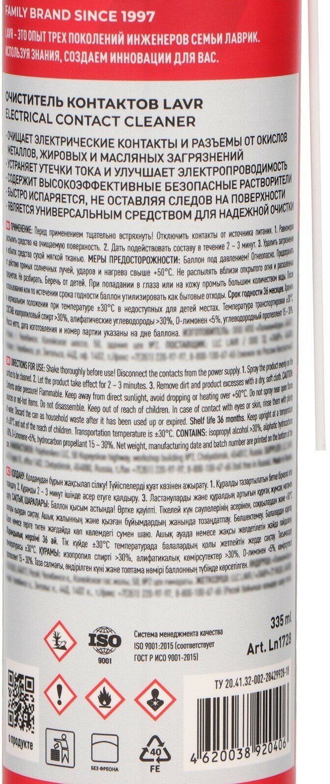 LAVR / ln1728 / Очиститель контактов, 335 мл