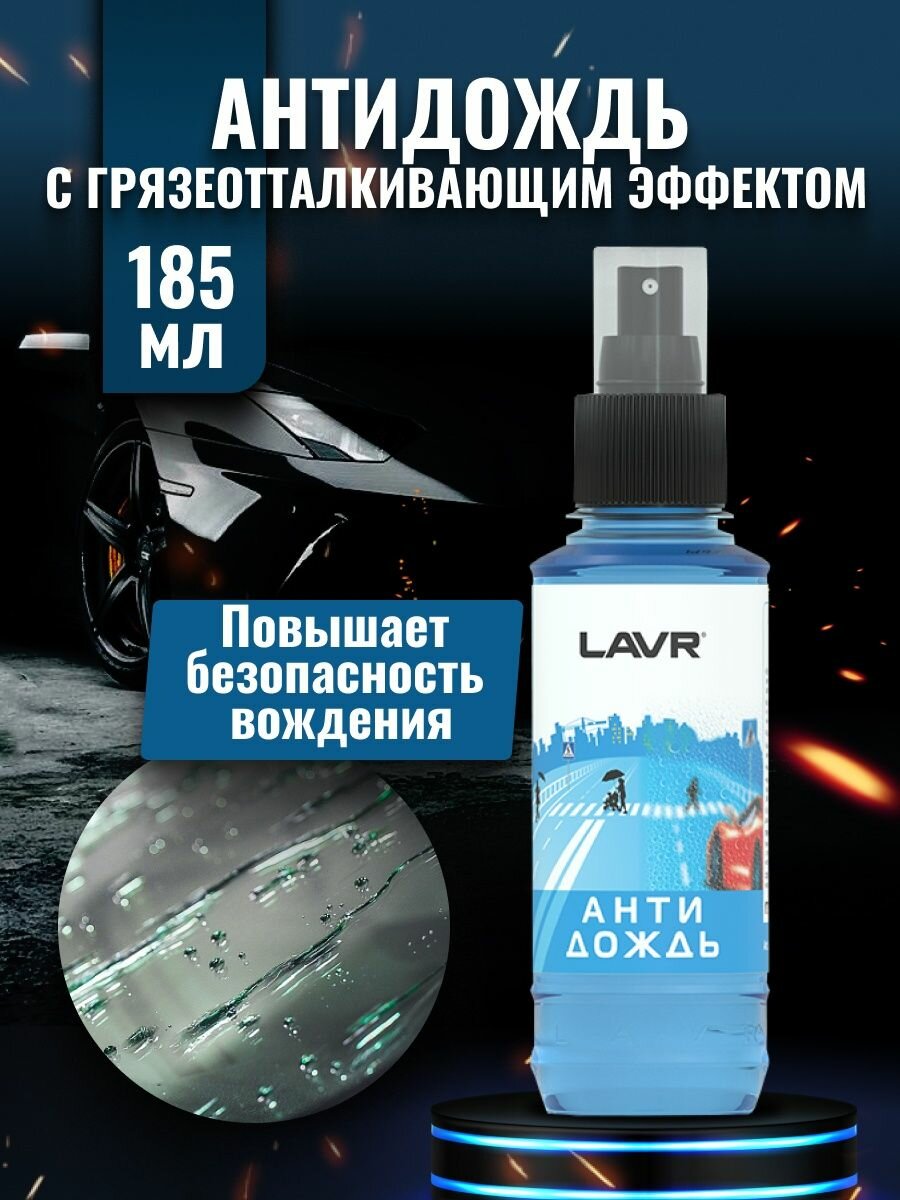 Антидождь Lavr, гидрофобное средство для стёкол с грязеотталкивающим эффектом, 185 мл
