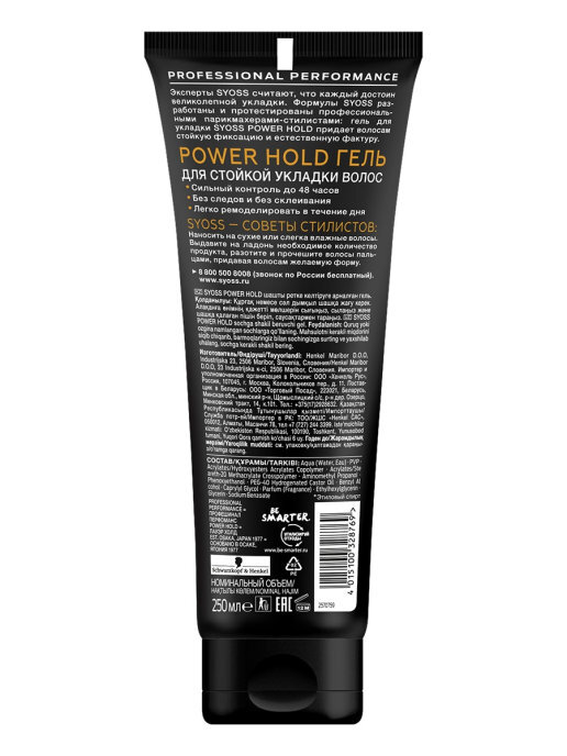 SYOSS Гель для укладки волос Power Hold Естественная фактура Сильный контроль 250мл