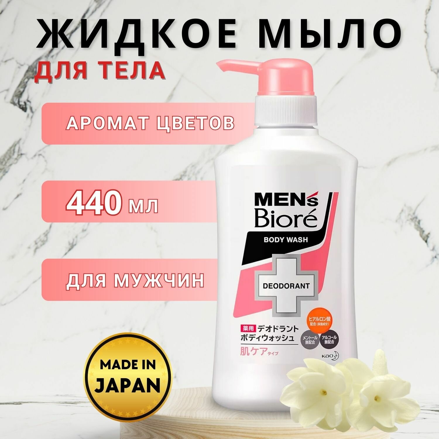 Купить Мужское жидкое мыло для тела KAO Men's Biore пенящееся с противовоспалительным и дезодорирующим эффектом, с цветочным ароматом, 440 мл