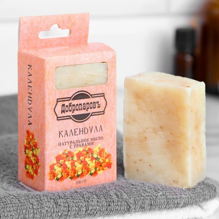 Мыло банное натуральное с травами в коробке"Календула" 100 гр Добропаровъ Добропаровъ 7621292 .