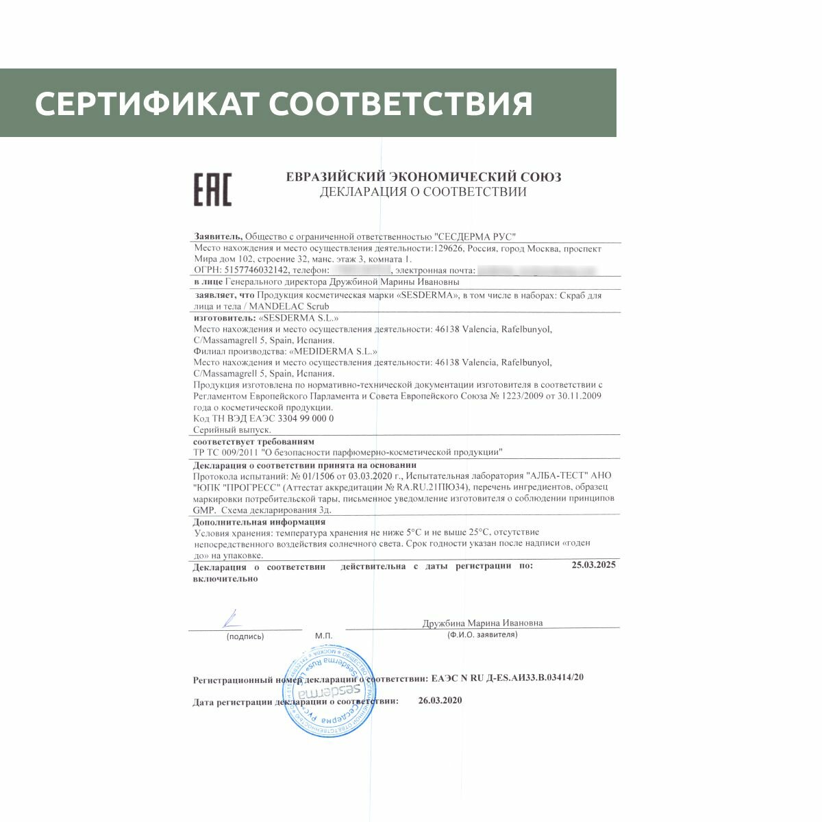 | Производитель | SesDerma |