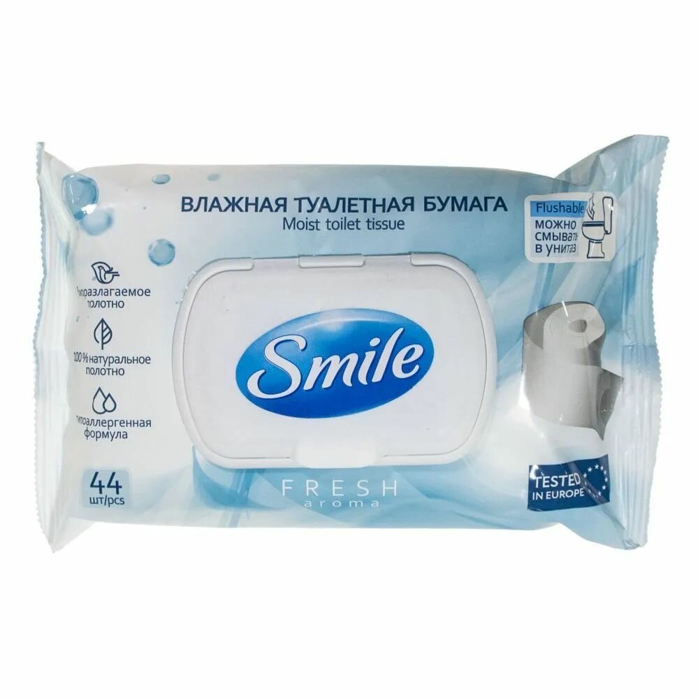 Влажная туалетная бумага Smile "Fresh", с клапаном, 44 шт (14410148)