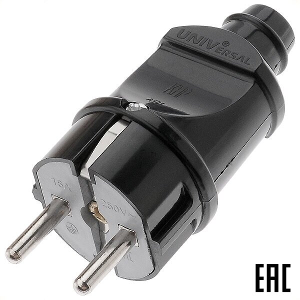 Вилка электрич. с заземл. прям. черн. 16А 250В (еврослот) UNIVersal А1010 ( 1шт. )