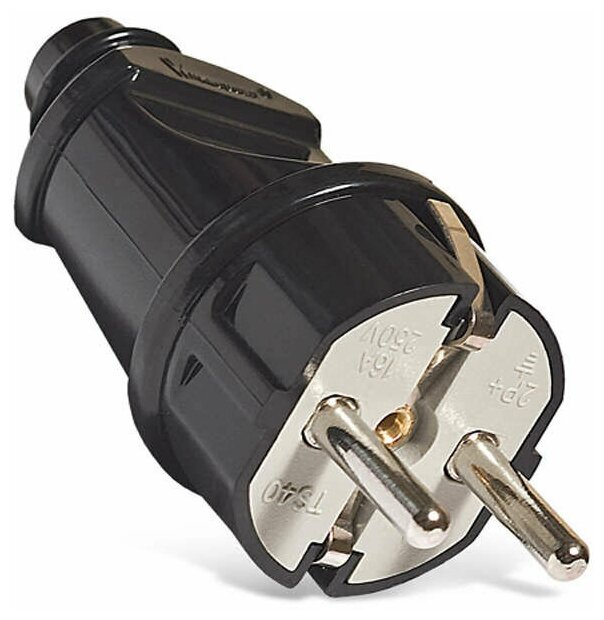 UNIVersal Колодки, вилки, разъемы Вилка прямая с заземлением черная 16А 250 В, АБС-пластик А1010