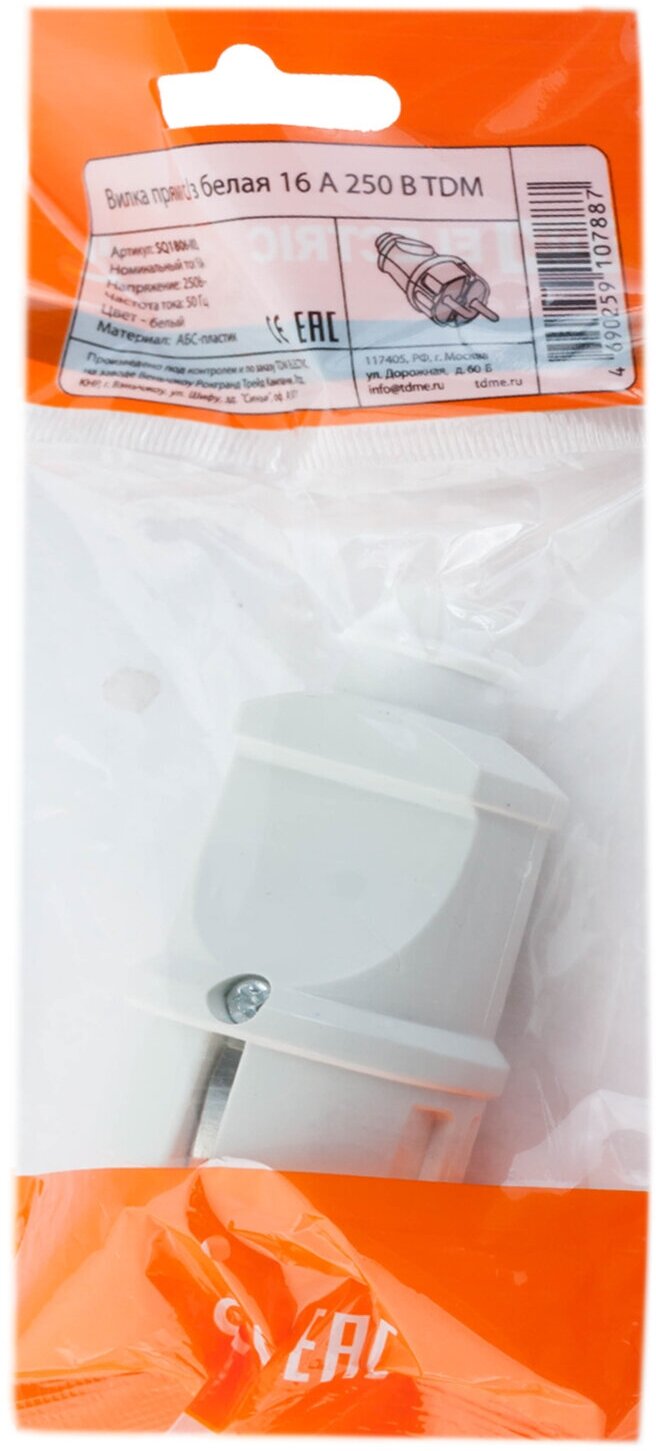Вилка TDM ELECTRIC SQ1806-0003 16 А белый 1 шт. 100 г