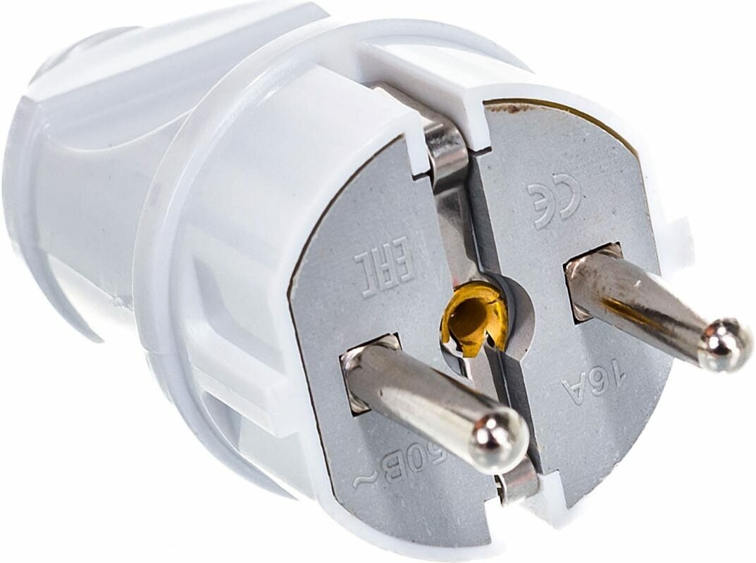 Вилка штепсельная с заземлением белая