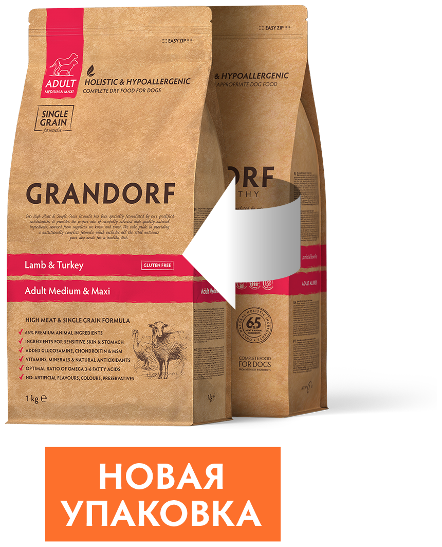 Грандорф Ягненок с индейкой для взрослых собак средних и крупных пород 1кг /GRANDORF DOG Lamb&Turkey MED&MAXI/