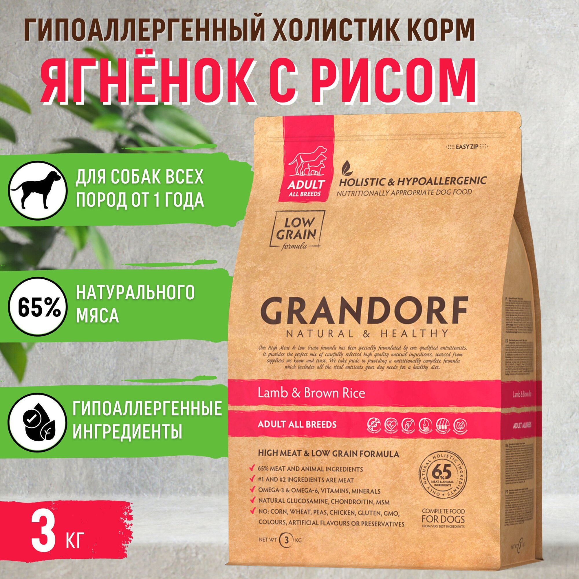 Сухой корм для собак Grandorf гипоаллергенный, при чувствительном пищеварении, для здоровья кожи и шерсти, костей и суставов, ягненок, с коричневым рисом 3 кг