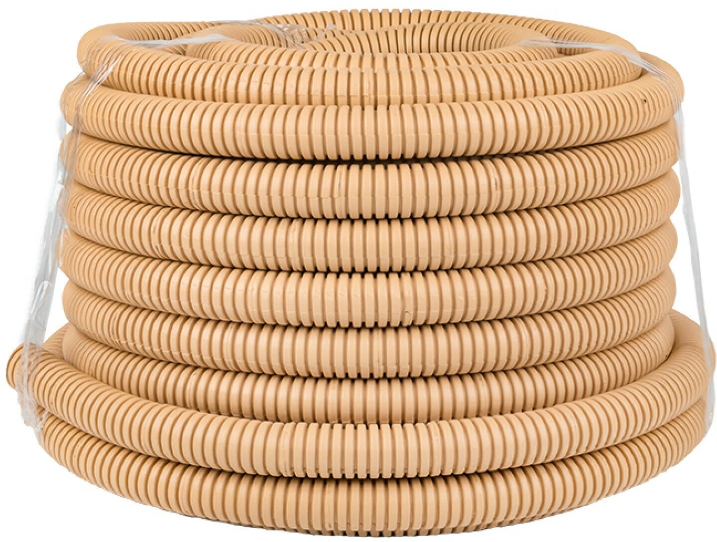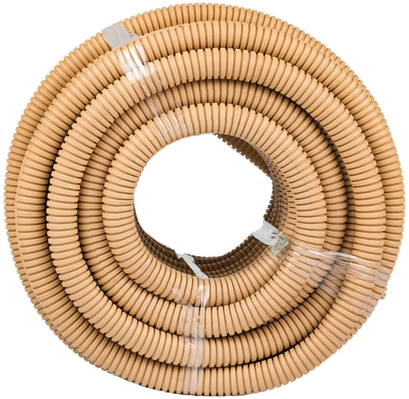 Труба гофрированная ПВХ, с протяжкой, d25 мм, светлое дерево, EKF-Plast - бухта 25 метров