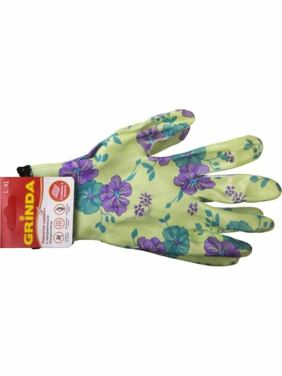 Перчатки GRINDA садовые, прозрачное нитриловое покрытие, размер L-XL, зеленые, 11295-XL