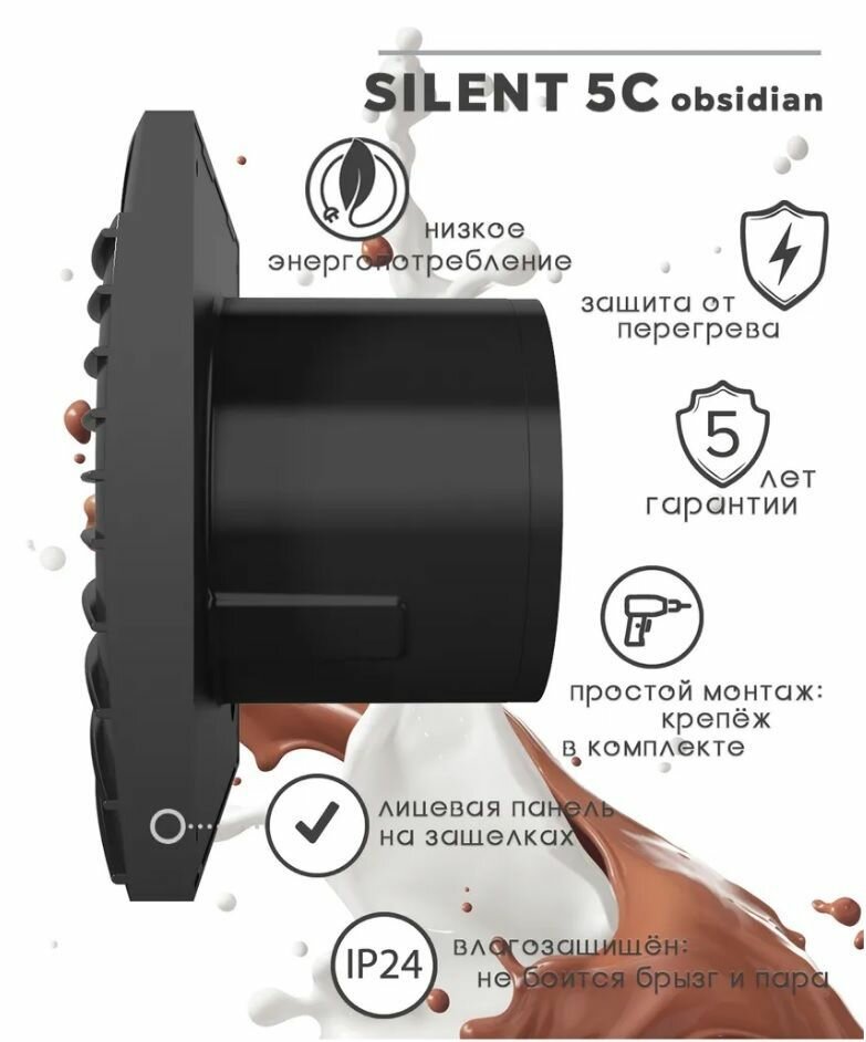 Вентилятор осевой вытяжной с обратным клапаном для кухни/ванной DICITI SILENT 5C Obsidian Черный глянец D125 10В