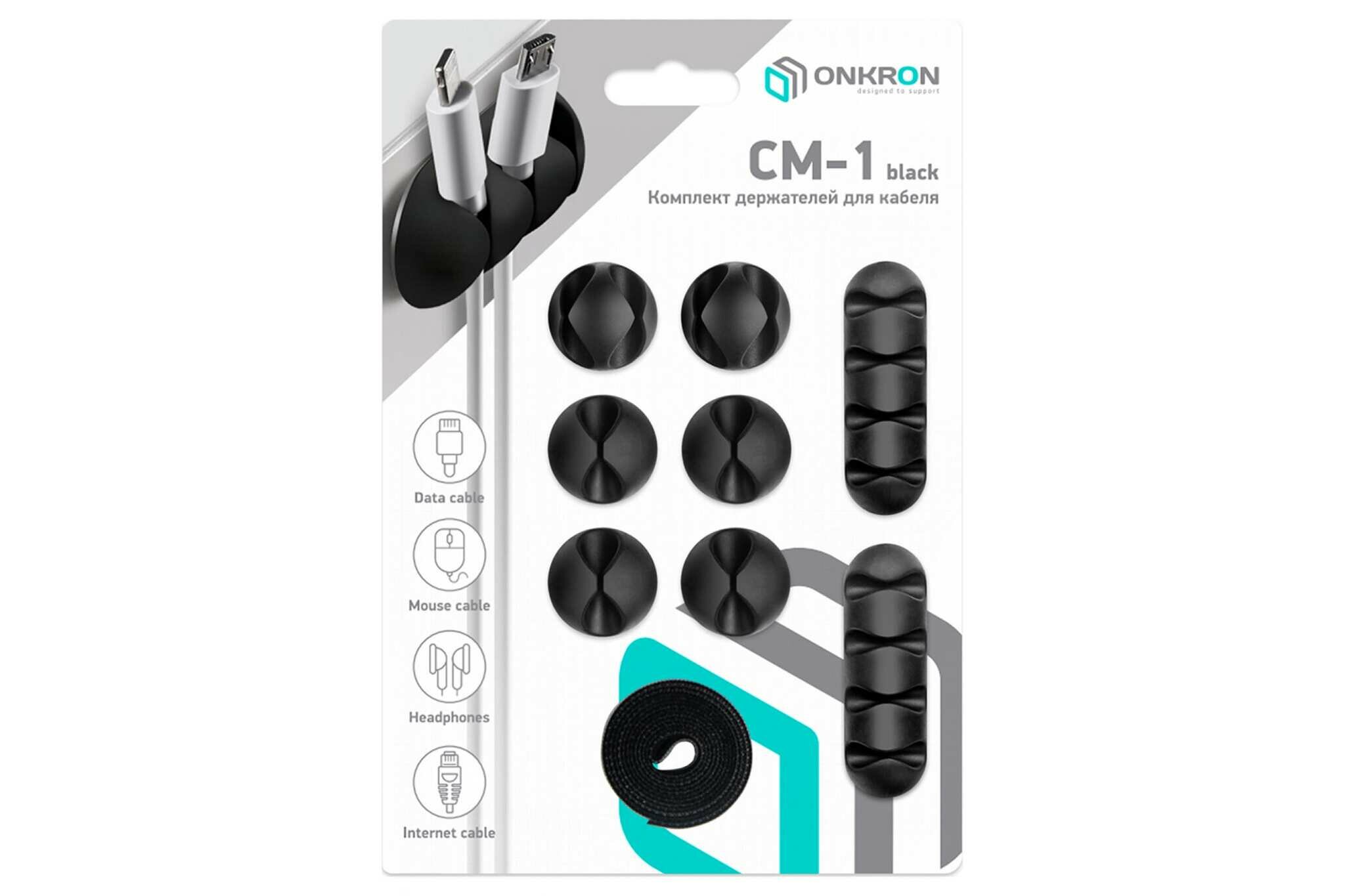 Onkron набор крепежа для проводов Cm1, чёрный Cm-1b .