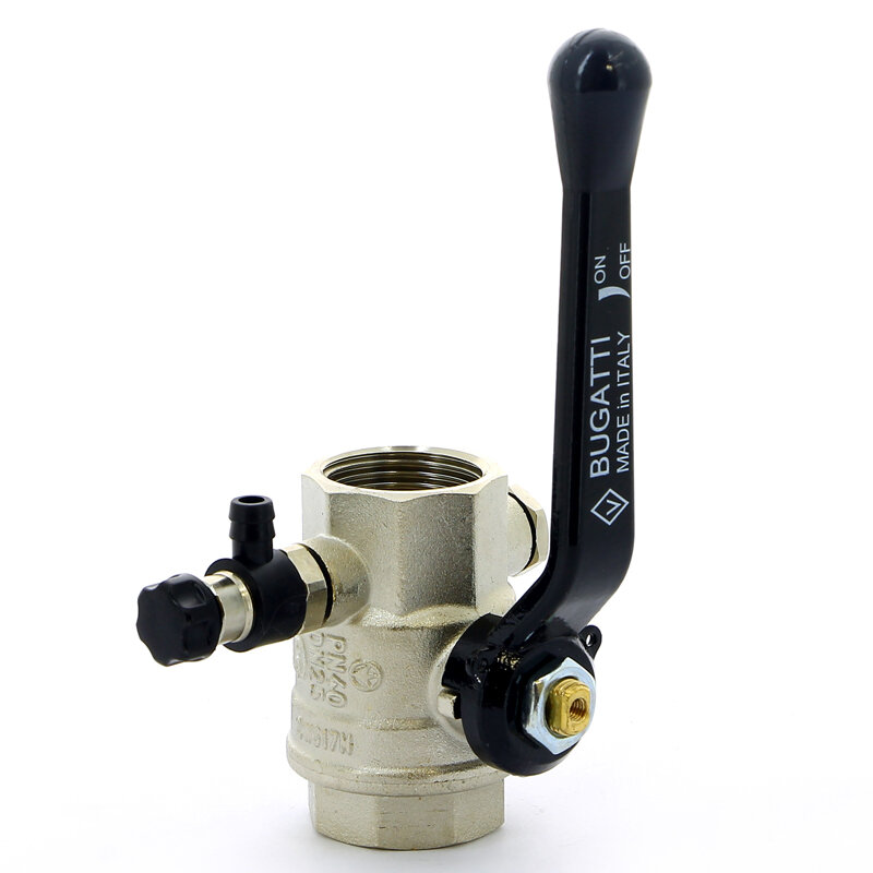 Кран шаровой Bugatti Oregon 03300024 с дренажем и воздухоотводчиком, (ручка-рычаг) ВВ резьба 3/4"
