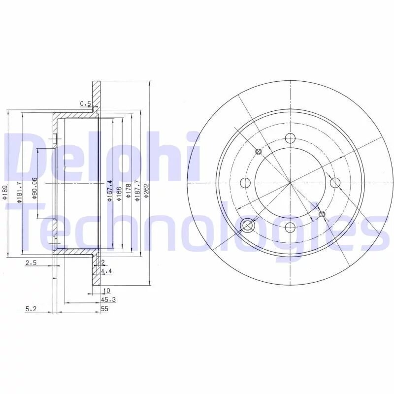 Диск Торм. Зад.[262X10] 4 Отв. Delphi арт. BG3400